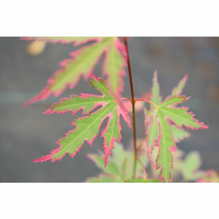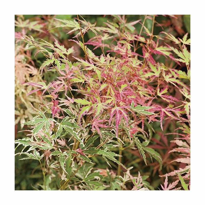 Leaves emerge a pretty salmon pink, but fade to green with the variegation remaining. Nice compact habit perfect for maximum impact in a small space.